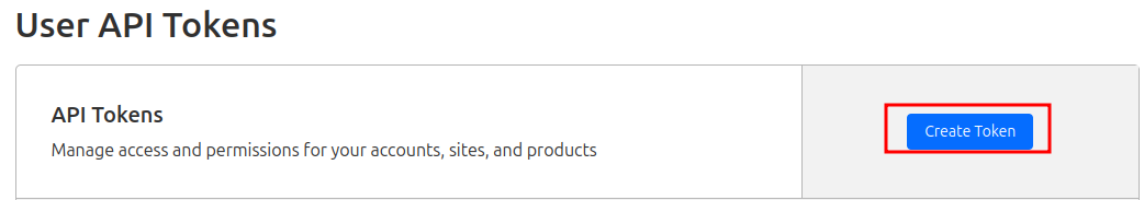 On the left hand side select API Tokens and then click on Create Token.